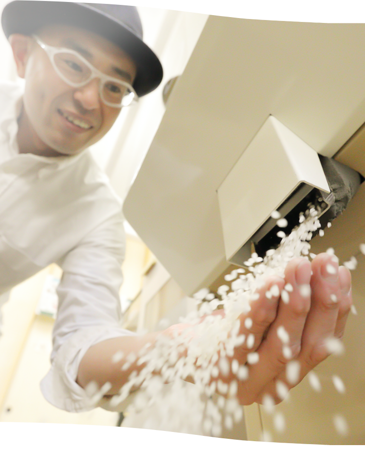 全国各地のお米の産地を選び、品種を選ぶ当店の量り売りスタイルにすることで、お米・ご飯に興味を持ち、選ぶ楽しさを知っていただきたい。その土地土地の自然の恵を頂く事への感謝の氣持ち、食と人、人と人のご縁を結ぶそのきっかけ作りになりたいと、13年間の高知県での生活から地元堺市に戻り開業。今に至る。